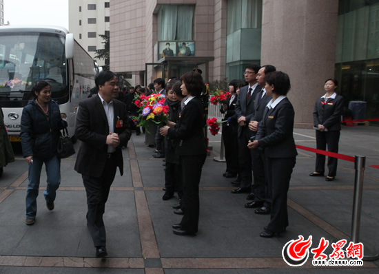 下午5:15,來自山東的180名人大代表乘車來到駐地——中國(guó)職工之家。他們雖然很是疲憊,可還是難掩一臉的興奮之情。他們一邊提著行李與熟識(shí)的代表打著招呼,一邊表示對(duì)即將開幕的兩會(huì)充滿期待。