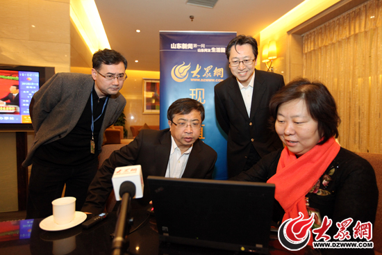 大眾網(wǎng)總編輯助理、采訪中心主任李冉向李建軍等領導介紹說,大眾網(wǎng)本次全國“兩會”報道共派出9名上會記者、編輯,大家克服各種困難,白天采訪,晚上寫稿,截至目前采訪人大代表、政協(xié)委員50多位,已完成原創(chuàng)稿件近200篇,尤其是“請問省長”和“請問書記、市長”欄目,已經(jīng)連續(xù)堅持了三年,在業(yè)界和網(wǎng)友中引起強烈反響。