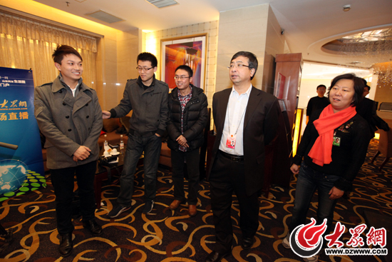 大眾網(wǎng)北京3月11日訊(特派記者 尹玉濤 王磊 盛堃 劉國棟)今天上午,山東省委宣傳部副部長李建軍在省委宣傳部新聞處處長楊曉洲、副處長李慶義的陪同下,專程來到大眾網(wǎng)設在全國人大代表山東團駐地的“兩會直播間”,親切看望報道全國“兩會”的大眾網(wǎng)采編人員。在聽取了大眾網(wǎng)全國“兩會”期間的工作情況介紹,他對大眾網(wǎng)的全國“兩會“報道給予充分肯定,并對“請問省長”、“請問書記、市長”以及3G直播山東團“每日會話”等欄目給予高度評價。