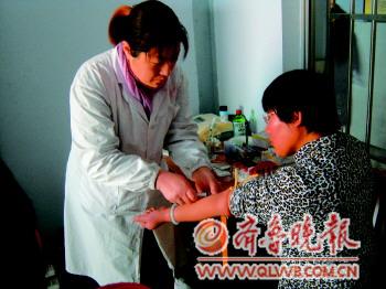 無棣縣水灣鎮(zhèn)中心衛(wèi)生院醫(yī)生在為村民做檢查。(資料片)