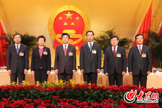 圖為濱州市十屆人大常委會(huì)主任、副主任、秘書長。 記者 王曉霜 攝