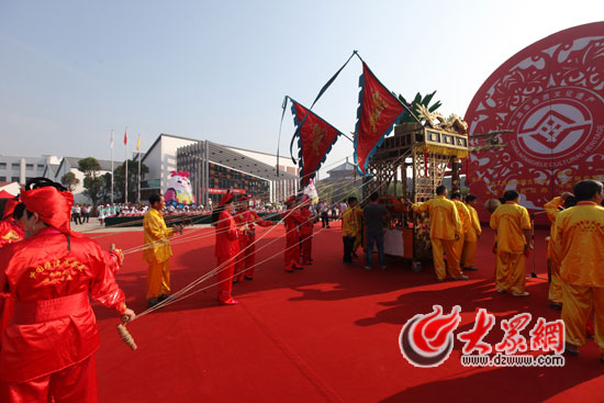 大眾網(wǎng)棗莊9月6日訊(記者 尹海洋 馬鑫)在朝鮮族長鼓舞之后登場的,是被譽為“東方一絕”的浙江永康《九獅圖》表演。