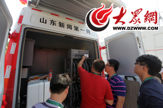 大眾網(wǎng)工作人員正在調(diào)試衛(wèi)星直播車,明日將對(duì)開(kāi)幕式進(jìn)行全程直播。