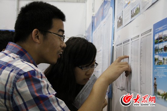 在高考咨詢會上,兩位學(xué)生正仔細地研究著學(xué)校的招生專業(yè)和歷年的錄取分數(shù)線。見習(xí)記者 張帆 攝