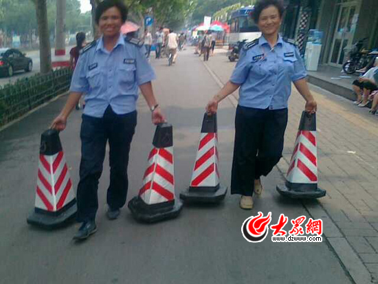 上午雖然有陣雨,但是午后逐漸悶熱起來(lái)。下午1:30,參加濟(jì)南七中考點(diǎn)執(zhí)勤的協(xié)警將路障設(shè)置在考點(diǎn)周圍,開(kāi)始規(guī)范行人和車輛的行駛。因?yàn)榻裉煜挛绲目荚嚳颇渴怯⒄Z(yǔ),所以在考生進(jìn)場(chǎng)后還要限制車道,在考試開(kāi)始后,解放路從西向東方向的機(jī)動(dòng)車道由原先的四車道變?yōu)閮绍嚨馈?/P>