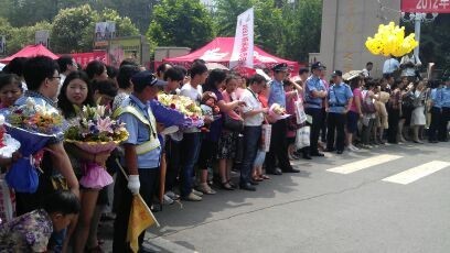 來源: 大眾網(wǎng)[提要] 距離結束鈴聲打響還有十分鐘,家長們已經(jīng)聚集到學校門口,有的捧著鮮花,有的抱著布熊,有的擎著氣球,有的舉著相機,等待著孩子們出來,第一時間送上祝福