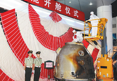 2012年6月29日10時(shí)03分,萬眾矚目中,神舟九號(hào)飛船在太空遨游13天后,順利在內(nèi)蒙古四子王旗大草原著陸,為中國首次載人交會(huì)對接畫上圓滿句號(hào)。