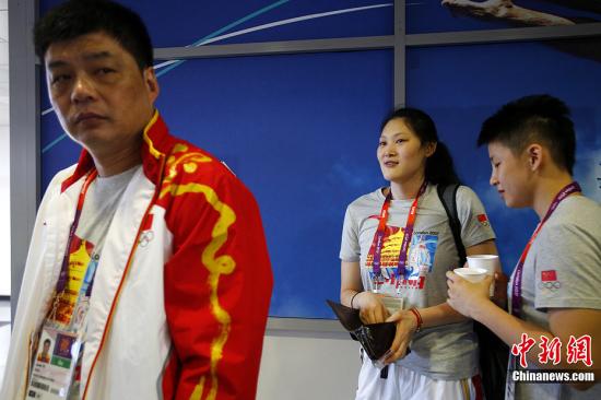 7月22日,中國女排乘坐CA937次航班抵達(dá)英國倫敦,備戰(zhàn)2012倫敦奧運(yùn)。圖為女排隊員張磊(右一)和王一梅(右二)和主教練俞覺敏。中新社發(fā) 富田 攝
