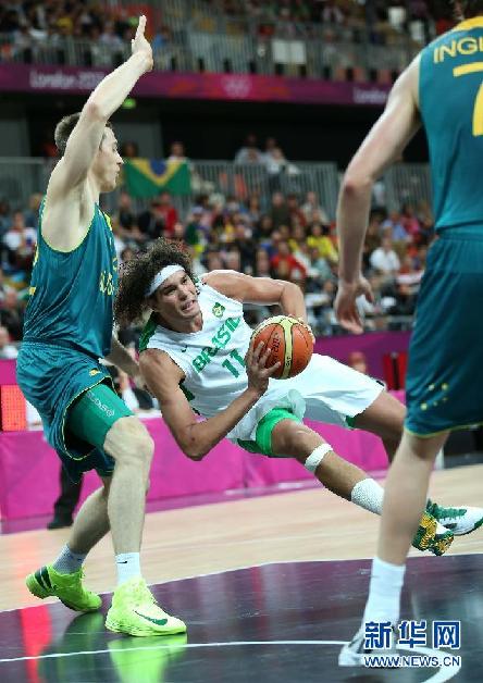 新華網(wǎng)快訊:7月29日,在2012倫敦奧運(yùn)會男子籃球小組賽B組的一場比賽中,巴西隊(duì)以75比71戰(zhàn)勝澳大利亞隊(duì)。