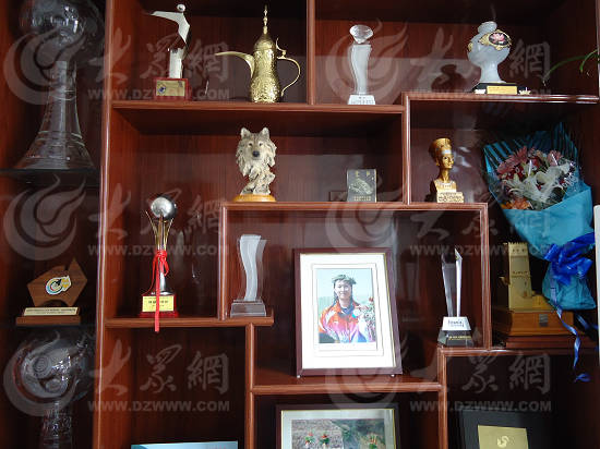 魏寧家的柜子上擺滿了魏寧獲得的獎杯