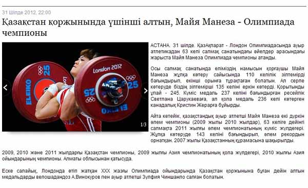 繼祖爾菲亞奪冠后,麥亞也拿到了金牌。哈薩克斯坦國(guó)內(nèi)一片歡騰。該國(guó)媒體認(rèn)為她們的表現(xiàn)鑄就了哈薩克斯坦舉重乃至全國(guó)體育的輝煌。要知道在北京奧運(yùn)會(huì)上,哈薩克斯坦總共只拿到兩塊金牌,而且全部是男子項(xiàng)目。此番祖爾菲亞和麥亞雙雙發(fā)威,讓哈薩克斯坦女子舉重隊(duì)一炮走紅。