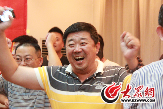 李曉霞獲得女單冠軍。校長劉凱揮著雙臂高喊:“今天就是過年!都別走!上酒!”(馬鑫 攝)