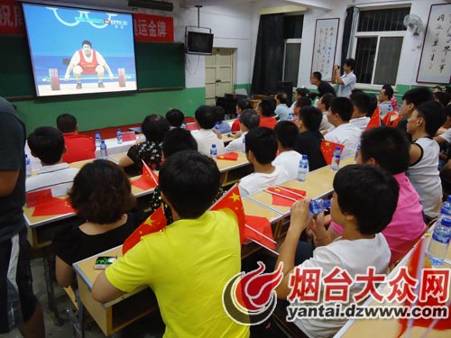 8月5日22點,當(dāng)記者到達煙臺市體育運動學(xué)校時,冠軍教學(xué)樓門口已經(jīng)聚集了一群準備觀看比賽的體校學(xué)生,教學(xué)樓左側(cè)的滾動屏幕上也不時顯示“周璐璐!煙臺人民為你喝采!”“力拔山兮氣蓋世,當(dāng)屬體校周璐璐”等字樣,為遠在倫敦的周璐璐加油打氣。