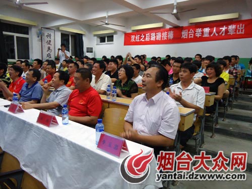 據(jù)了解,此次煙臺市體校共開放了5個分會場,約有600人同時觀看了周璐璐的比賽。當(dāng)記者走進會場之一的一樓階梯教室時,掛在墻上的條幅“雙紅之后璐璐接棒 煙臺舉重人才輩出”映入眼簾,而此時座位上早就坐好了迫不及待觀看比賽的學(xué)生,隨后有關(guān)領(lǐng)導(dǎo)和體校教職工也相繼到位。