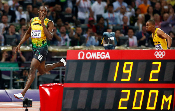 北京奧運(yùn)會(huì)19秒30,柏林世錦賽19秒19,大邱世錦賽19秒40,博爾特在過(guò)去幾年一直統(tǒng)治著200米這個(gè)項(xiàng)目。布雷克在今年曾威脅到博爾特,去年他甚至跑出了19秒26,但在今夜,博爾特像閃電一樣證明,他仍是短跑項(xiàng)目的絕對(duì)統(tǒng)治者。
