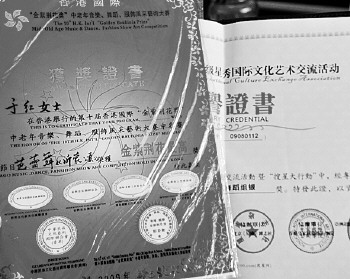 參加香港國際藝術(shù)大賽的獲獎證書。