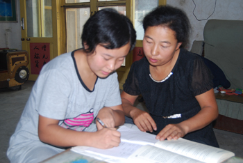與丈夫的老家相比,羅宗珍在本鎮(zhèn)彭莊村的娘家就相對近一些,唯一的哥哥在十幾年前就因車禍去世了,家有年過六旬的啞母和身患多年冠心病的老父親。為了老人今后的生活,羅宗珍為老人買了養(yǎng)老保險、辦理了計劃生扶助獎金手續(xù)。身體硬朗的母親雖不會說話,但靠手勢與父親交流感情頗深,近2畝地全靠母親操持。平時,母親用腳蹬三輪車拉著父親上山砍些荊棘,回來喂羊。