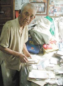 劉盛蘭正坐在椅子上打盹,年近九十的他,黝黑干瘦的臉上布滿粗粗的皺紋。正是這個(gè)黑瘦的老人,將自己一輩子的積蓄,都捐給了貧困學(xué)生。而自己17年來幾乎都是依靠撿拾別人丟棄在垃圾堆里的蔬菜過活。