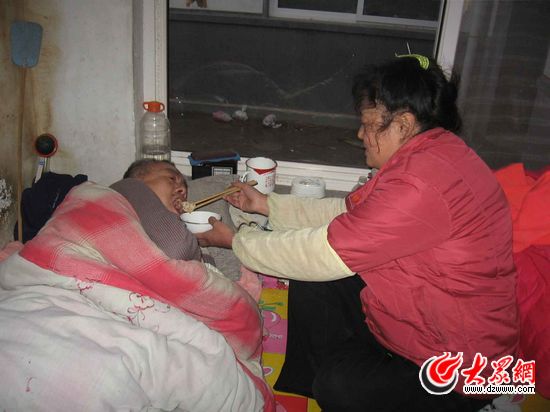 來源: 大眾網[提要] 20多年過去了,王秀香歷盡艱辛,默默無聞,無怨無悔地表達著對鄒興福的關愛,她和丈夫朱典臣每天堅持給興福翻身、倒大小便、擦身、拿刷牙缸、端洗臉水、端飯、每周換一次衣服。鄒興福也從來沒穿過一件尿濕的衣服,沒生過一次褥瘡。