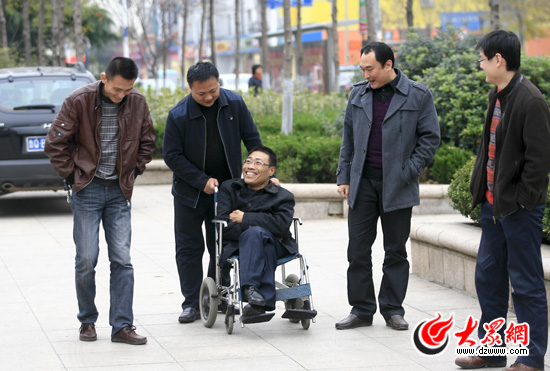 來源: 大眾網(wǎng)[提要] 坐在輪椅上的是39歲的徐恒強,他7個月大時患上了脊髓灰質(zhì)炎而導(dǎo)致終生殘疾,走路只能靠扶著板凳一步一步地挪動。27年前,上三年級的他遇到了生命中的“貴人”——馬軍波、任子超、馬學(xué)成,用小推車推其上學(xué)下學(xué)……無論刮風(fēng)下雨,無論酷暑嚴(yán)冬,總是他們,總在堅持。