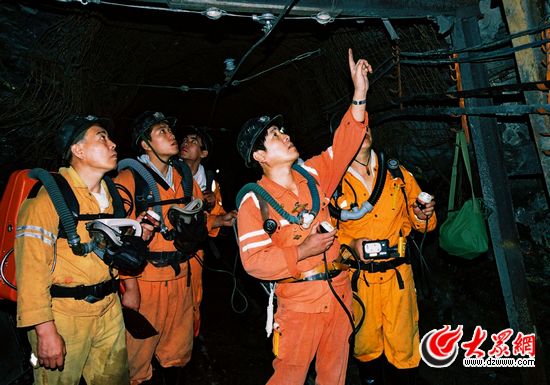 2003年11月14日,淄川區(qū)昆侖鎮(zhèn)頁巖礦發(fā)生透水事故,22名礦工被困。接到命令后,58名救護(hù)隊員立即到達(dá)井口。他們分兵兩路,一路恢復(fù)井下通風(fēng)系統(tǒng),另一路安裝水泵。突然,井下涌出有毒氣體,救護(hù)大隊的隊員們指揮60多名無防護(hù)人員迅速撤離,而他們自己堅持留在現(xiàn)場。當(dāng)水面離頂板還有0.25米時,他們紛紛進(jìn)入水中,在齊肩深的水中行進(jìn)50多米,從水淹巷道內(nèi)陸續(xù)救出了22名被困礦工,而這時,救護(hù)大隊的隊員們已整整26個小時沒合眼,個個筋疲力盡。大隊長李剛業(yè)從始至終一直盯在現(xiàn)場,直到把人員一個個都送出井口,他最后一個上井,在情況匯報還不到一半時就睡著了。