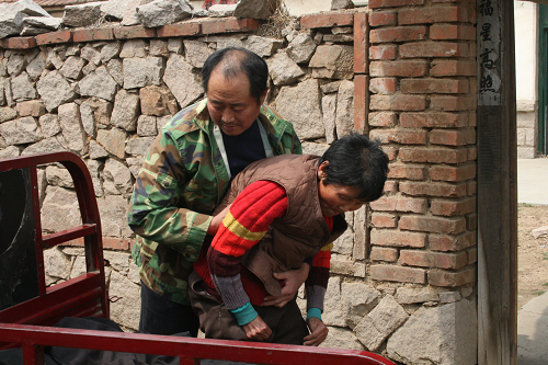 久病床前無孝子,更何況是夫妻。老任用他20余年的相濡以沫做出了反證。因為任守田要到農(nóng)地里干活,妻子又時刻需要人照料,兩個孩子上學,家中又沒人可以幫上忙,于是任守田便找來拖車,放上被褥,把妻子拉到地頭,也是讓妻子散散心,自己邊干農(nóng)活,邊照顧妻子,就這樣一晃就是20年,期間的風風雨雨,說不盡的心酸與愁苦,只有老任知道,但他從沒發(fā)過一句牢騷,從沒有一句怨言。直到去年,已經(jīng)56歲的老任感覺拖車越來越沉重,到村西嶺上的坡就拉不上去了。沒辦法,雖然家徒四壁,他咬咬買了輛舊三輪摩托,為的是照顧好妻子。這是家中唯一值錢的東西。