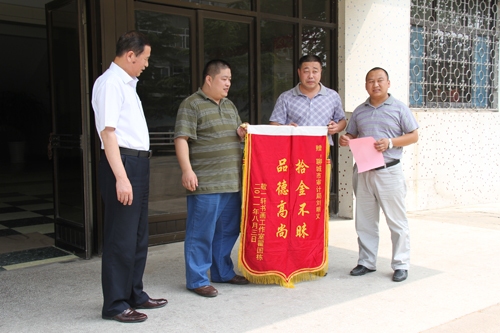 拾金不昧,彰顯審計精神。2011年8月2日上午,該同志在吃早餐時,撿到一個手提包,包內(nèi)有兩萬多元現(xiàn)金及信用卡、身份證, 還有幾十萬元的業(yè)務(wù)往來票據(jù)。劉明義同志及時尋找失主,并尋求110幫助,最后在警察同志的配合下將皮包歸還失主,并不留姓名離開了現(xiàn)場。失主為表示感謝,根據(jù)當(dāng)時記住的車牌號,經(jīng)多方打聽,了解到劉明義是市審計局的工作人員,于是訂做了錦旗、寫了表揚信,并聯(lián)系“民生面對面”欄目組來到審計局對劉明義表示感謝。面對鏡頭,劉明義同志說:“我只是做了一件別人也會這樣做的事,不值得報道,我不能接受采訪!