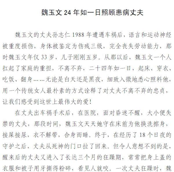 來(lái)源: 大眾網(wǎng)[提要] 24年如一日照顧患病丈夫,讓我們感受到這世界上最偉大的愛(ài)