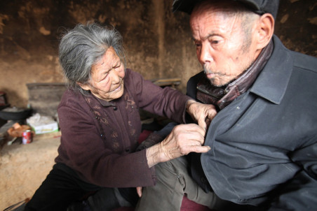 每天早上,要靠老母親給穿上衣服、鞋襪后把我抱下來(lái),給我做好飯,要把飯端到桌子上,把筷子遞到手里,兩手托著才能吃點(diǎn)飯。要想站起來(lái),也得靠母親把我抱起來(lái),不怕別人笑話(huà),就連大小便也得靠俺娘我才能蹲下和站起來(lái)!睋(jù)了解,謝加富的弟弟叫謝加遠(yuǎn),十幾年前得的也是同樣的病,2008年去世。趙家美老人從那時(shí)起一天要照顧兩個(gè)孩子的飲食起居。趙家美老人說(shuō):“那時(shí)兩個(gè)兒子都得了病不能動(dòng)了。因?yàn)椴荒苌舷麓,二兒子在屋里打了一個(gè)地鋪,這樣方便了些。我除了去做飯就是圍著他們兩個(gè)轉(zhuǎn),一天下來(lái)累得我腰酸背痛。那時(shí)候還行,現(xiàn)在硬撐著也干不動(dòng)了,我還能活幾年呢?我死了誰(shuí)來(lái)照顧他呢?”老人一臉愁容,老觀念對(duì)兒子未來(lái)生活的無(wú)限擔(dān)憂(yōu)。90歲的她對(duì)此越來(lái)越感到吃力和無(wú)奈,但趙家美老人沒(méi)有別的選擇,沒(méi)有人代替她或幫助她。她這樣照顧喪失生活自理能力的兒子已經(jīng)快二十年了。