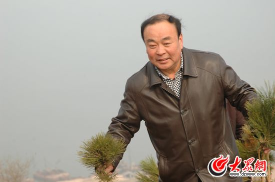 孫業(yè)潤在擁翠山上與員工們一道栽植黑松