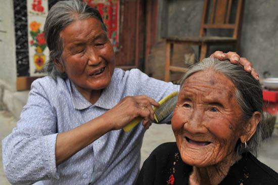 陳丙英家住星村鎮(zhèn)姜家村,是位 80歲的老人,她照顧堂嬸35年如一日,已成為當?shù)貍黜灥募言。陳丙英的堂?5歲,名叫劉繼平,她是位苦命人,剛結(jié)婚時間不長,丈夫就離世,僅留下的一個女兒在生孩子時得病早逝。孤苦無依的劉繼平,年輕時還能自己一人生活,隨著年紀越來越大,失去了勞動能力,生活難以自理,陳丙英見狀于心不忍,就把老人接到家中照顧。當時,陳丙英家有兩兒兩女四個孩子,家庭也挺困難,一年下來,能吃飽就不錯了,可是陳丙英一家寧愿自己吃糠咽菜,也要想法讓堂嬸吃得飽穿得暖,逢年過節(jié),總會給堂嬸添置新衣、改善伙食。10年前,堂嬸不小心摔傷后,一直臥床不起,陳丙英老人拖著年邁的身體悉心照顧堂嬸,為老人端屎端尿,從沒有嫌棄過她。10年來,陳丙英早晨起床第一件事就是先為堂嬸沖上兩個雞蛋,隨后侍候老人擦臉洗手把雞蛋喝下去,然后幫助老人穿衣,最后為老人準備早飯。冬季天冷,一大早她就為老人生著火爐,灌上暖水袋,每天光暖水袋就換好幾次,每逢天氣好時,就讓孩子們幫忙把老人搬到房前曬太陽。堂嬸雖說高齡多病又臥床不起,可是十分愛干凈,睡覺前都要擦臉洗腳,陳丙英就天天給老人端洗腳水,天天為老人擦臉梳頭。老人喜歡吃零食,陳丙英就把孩子們給她的零花錢給老人買零嘴,自己卻舍不得吃一口。給老人買的牛奶每次都得燙熱再讓她喝,生怕堂嬸著了涼。說起照顧堂嬸,鄰居沒有一個不豎大拇指的。有一次冬夜,堂嬸睡夢中從床上掉了下來,陳丙英聽到后骨碌起來,沒顧得上穿棉衣就慌忙朝床上拖堂嬸,可自己年已八旬,體力不及,費了很大功夫才把堂嬸弄到床上,堂嬸一點事沒有,陳丙英卻感冒了10多天。到了夏季天熱,堂嬸臥病在床,怕她身上長褥瘡,陳丙英得經(jīng)常給老人翻身擦體,洗澡搓背,讓孩子們幫忙把老人搬到?jīng)隹斓胤。堂嬸長年臥病在床,脾氣煩悶暴躁,生活特別挑剔。有一次,陳丙英給老人包水餃,匆忙中包的水餃有點大、皮子厚了些,沒想到堂嬸嫌水餃不好,生氣就是不吃,陳丙英又重新做了面條,堂嬸這才陰雨轉(zhuǎn)晴,高興得吃了起來。