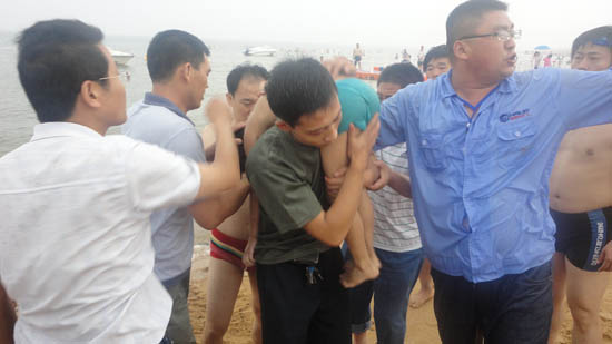 7月22日,正逢周末,濰坊濱海新城“歡樂(lè)海”沙灘吸引了眾多的游客,其中一位夫婦帶著8歲的兒子也來(lái)到了“歡樂(lè)!钡暮K(chǎng)游玩。孩子在淺水區(qū)嬉戲玩耍時(shí)由于父母的看管不慎摔倒,被海浪沖向了深處!吧綎|海利爾化工義工團(tuán)”領(lǐng)隊(duì)魏長(zhǎng)義在人工沙灘最西邊的區(qū)域撿垃圾時(shí),突然發(fā)現(xiàn)不遠(yuǎn)處深水區(qū)與淺水區(qū)的分界線處一只小手不斷伸向水面,像是在掙扎,且呈慢慢下沉的跡象,于是他迅速拿起手里的擴(kuò)音器,一邊趟著海水往里走,一邊大聲招呼義工快來(lái)救人。