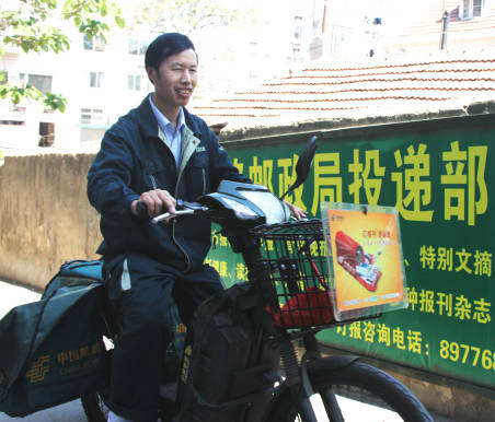 每天早上5點,王忠偉都會準(zhǔn)時出現(xiàn)在崗位上,推著裝滿信件、報紙、包裹、匯票的郵包,風(fēng)雨無阻。在他的懷里有一個小小的記事本,上面密密麻麻記著許多用戶的電話以及平時需要注意的事項,就憑著這小小的記事本,18年的工作中他從沒發(fā)生過錯投、丟失信件,也從沒有產(chǎn)生過一例投訴。他還特別留意哪一家有要高考的學(xué)生,把這些情況也記在小本子上,等有錄取通知書到了,他總是能快速、準(zhǔn)確的找到用戶家,從不耽誤。到了報刊收訂時節(jié),王忠偉就更忙了,由于他服務(wù)熱心,為用戶推介合適的報刊,因此總能成為收訂報刊最多的一個,甚至在他更換段道之后,過去的老用戶打電話也要找到他。他們都說,把錢交給王忠偉心里踏實。