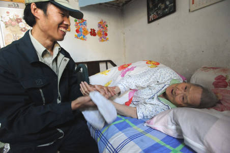 綠衣信差照顧空巢老人13年沒回老家