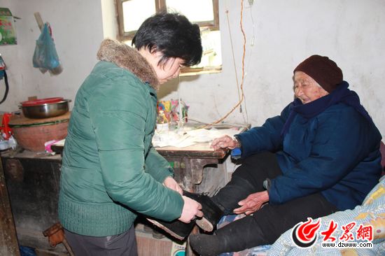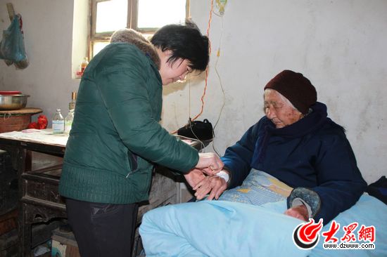 4月30日上午,唐秀君家中,86歲的郭秀菊老人正躺在床上輸液,唐秀君在旁邊端茶倒水,寸步不離,就像親娘倆?烧l曾想到,她們之間毫無血緣關系。郭秀菊老人有些耳背,但提起唐秀君,她的臉上就綻開了花:“這些年多虧秀君伺候我,要不是她,我早就入土啦!” copyright zhgax.com