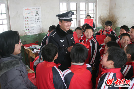 高占雄在河口區(qū)義和鎮(zhèn)六頃村小學(xué)給學(xué)生們宣傳安全防范常識(shí)。