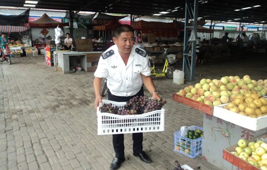 談起自己的工作,劉康同志說(shuō):老父親一直教育我有份工作就該知足,就該本分的干好工作,穿上制服,就要為民服務(wù),干的工作要讓別人信服。這樸實(shí)無(wú)華卻又蘊(yùn)含哲理的話自此成了劉康同志的人生理念,成了融化到骨子里的錚錚誓言。他用自己踏踏實(shí)實(shí)的工作踐行著這條信念,十幾年如一日地堅(jiān)守與堅(jiān)持,在平凡的工作崗位上做出了不平凡的業(yè)績(jī)。調(diào)入市場(chǎng)辦以后,劉康同志被分配到縣城黃海東路農(nóng)貿(mào)市場(chǎng),具體負(fù)責(zé)該市場(chǎng)的所有管理工作。市場(chǎng)管理工作是一項(xiàng)繁瑣而特殊的工作,需要極大地耐心和細(xì)心,每天早上四點(diǎn)多,他就著裝整齊準(zhǔn)時(shí)來(lái)到市場(chǎng),疏導(dǎo)市場(chǎng)外擁擠的人群,引導(dǎo)商販有序進(jìn)入。做完這些就開(kāi)始不停地走、不停地轉(zhuǎn),規(guī)范市場(chǎng)秩序、清理市場(chǎng)衛(wèi)生,每一項(xiàng)工作都不放松。