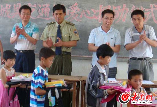 2010年5月19日,鄄城縣交通運(yùn)輸局維修科第一次結(jié)對(duì)助學(xué)捐贈(zèng)儀式在左營(yíng)鄉(xiāng)中心校舉行,來(lái)自全鄉(xiāng)多處小學(xué)的孫龍、劉泰等15名貧困學(xué)生分別收到了書包、鋼筆、文具盒和筆記本等學(xué)習(xí)用品。2011年1月18日上午,張培軍等9名同志又到舊城鎮(zhèn)走訪慰問(wèn)貧困學(xué)生,為周西棟等3名貧困學(xué)生家庭分別送去了兩袋面粉、兩桶食用油和兩箱方便面。他們的愛心助學(xué)行動(dòng),讓三個(gè)貧困家庭在嚴(yán)寒的冬日里,感受到了濃濃的暖意。他們這次救助的周西棟、申惠丹和王震三名貧困學(xué)生,都是單親家庭,生活十分拮據(jù),尤其是周西棟同學(xué),父親癱瘓?jiān)诖,生活不能自理。周西棟用他那幼小的雙肩撐起了整個(gè)家庭的重?fù)?dān),不僅要自己動(dòng)手做飯、洗衣,而且還要照顧重病父親的吃、喝、拉、撒、睡。但是周西棟同學(xué)卻沒(méi)有被沉重的生活負(fù)擔(dān)所壓倒,學(xué)習(xí)非?炭,成績(jī)十分優(yōu)異。當(dāng)看到張培軍等9名同志送來(lái)的面粉、食用油和方便面等生活必需品時(shí),周西棟父親這位飽受生活磨難的中年漢子也禁不住潸然淚下,泣不成聲?吹饺缓⒆拥牟恍以庥,張培軍等人一直表示,他們將把這種愛心活動(dòng)長(zhǎng)期開展下去,決心盡自己的綿薄之力,讓更多的孩子享受到社會(huì)大家庭的溫暖,順利完成學(xué)業(yè),將來(lái)成為國(guó)家和社會(huì)的棟梁之才。