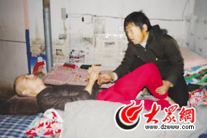 2006年的這一天對(duì)于陽(yáng)信縣流坡塢鎮(zhèn)西茍村村民茍振水一家來說是最黑暗的一天。準(zhǔn)備蓋新房的茍振水騎著摩托車到鎮(zhèn)農(nóng)信社取錢,路上不慎發(fā)生事故,導(dǎo)致頭部受到重創(chuàng),雖搶救及時(shí),但因傷勢(shì)較重,成為植物人,生命難保!爱(dāng)時(shí),俺就覺得天塌下來了!”劉春梅說。幸虧好心人發(fā)現(xiàn)茍振水出事后,撥打了120,茍振水被及時(shí)送到了縣人民醫(yī)院搶救,后又轉(zhuǎn)到濱州醫(yī)學(xué)院附屬醫(yī)院。盡管醫(yī)生盡了最大的努力,但是因腦細(xì)胞受損,茍振水深度昏迷了50多天,還是沒有醒來,臨床表現(xiàn)為對(duì)外界無認(rèn)知能力、與外界無法溝通、無行動(dòng)、日常生存所必須的作息(飲食、翻身、沐浴、更衣、排泄物處理等)完全由旁人照料?粗羧丈埢罨⒌恼煞颍缃駴]有任何感覺、一動(dòng)不動(dòng)地躺在病床上,劉春梅的心,碎了!但是當(dāng)醫(yī)院表示已無能為力時(shí),劉春梅這位樸實(shí)而堅(jiān)強(qiáng)的農(nóng)村婦女沒有放棄。當(dāng)時(shí),已花掉5萬多元錢的劉春梅實(shí)在沒有能力讓茍振水繼續(xù)住在醫(yī)院里了,不得不把丈夫接到了家里自己照料。