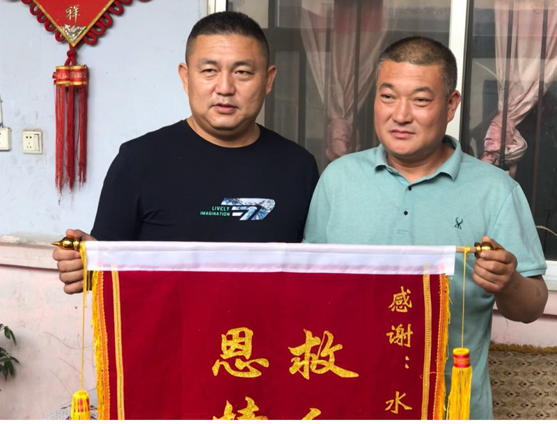 5月25日,等水付君身體康復了,落水男孩的父親張學明帶著一面“救人于危難恩情重如山”的錦旗,來到汶南鎮(zhèn)鮑莊村送到水付君手中!爸x謝水哥,謝謝水哥!救了孩子一命!也挽救了一個家庭!”張學明緊緊握著水付君的手,眼含熱淚的感謝他對孩子的救命之恩。