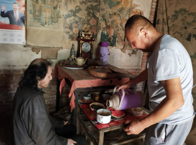 “老三,起來吃飯吧,你嫂子給你蒸的肉包子,還熬了你愛喝的玉米粥!泵刻煲淮笤,謝福起就會(huì)帶著做好的早飯來到弟弟謝啟生家中,幫弟弟整理床上的被褥,收拾房間里的衛(wèi)生。這樣的舉動(dòng),謝福起堅(jiān)持了三十多年。