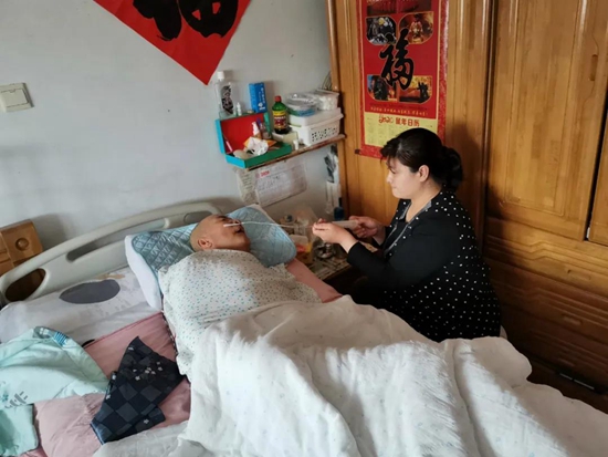 喂水喂飯、貼心呵護(hù),徐霞以拳拳孝心,陪伴著躺在病榻上的父親……十多年來(lái),徐霞放棄了工作,每天風(fēng)雨無(wú)阻的往返10里地的距離,從自己家中趕到父親家中照顧著他,她用行動(dòng)回報(bào)著父母的恩情,為父親撐起一片天。