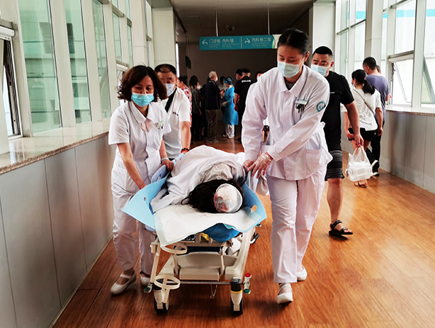 到達(dá)醫(yī)院后,高麗云護(hù)士長(zhǎng)又陪同慌忙趕來(lái)的女孩家長(zhǎng)一起推著女孩做檢查,CT掃描診斷為腦挫裂傷,左右側(cè)硬膜下出血,蛛網(wǎng)膜下腔出血,左側(cè)頂骨骨折,左側(cè)額骨骨折。她立刻與茫然中的家長(zhǎng)一起辦理住院手續(xù),護(hù)送女孩到神經(jīng)外科重癥監(jiān)護(hù)室。