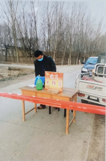 新冠疫情發(fā)生后,田新剛抱著“必定戰(zhàn)勝疫情”的決心,喊出“我是黨員我先上”口號,主動到防控一線值班、排查、消毒……與此同時,他第一時間向村里捐款。