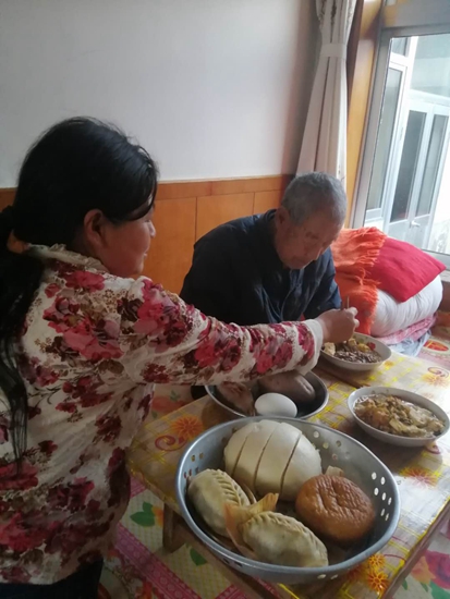 當(dāng)年,一家五口指著地里的莊稼過活,雖說不上貧困,但日子過得也是緊緊巴巴。那時(shí),算得上營(yíng)養(yǎng)品就是每天家里母雞下的那兩個(gè)雞蛋了,每天早上宮永臻便把這兩個(gè)雞蛋做給公公婆婆吃,久而久之,初家的早餐桌上總會(huì)有兩個(gè)雞蛋。后來宮永臻生了兒子,起名初開陽,小小的孩子打小就知道,每天早飯桌上的雞蛋他不能動(dòng),那是媽媽做給爺爺奶奶吃的。照樣學(xué)樣,現(xiàn)在長(zhǎng)成二十多歲大小伙子的初開陽,每天早上都會(huì)給自己九十六的爺爺端去一碗雞蛋羹,初家尊老孝老的家訓(xùn)也就是這么傳承下來了。