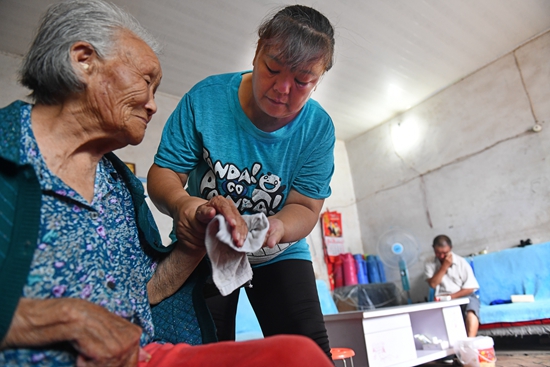 自從兩人癱瘓后,張珍就沒睡過一個(gè)囫圇覺,每夜都得起來三四次,到大娘床前看看,給她掖掖被子,幫老人翻個(gè)身,伺候伺候小便,然后再去照料一下大伯哥。每個(gè)晚上,張珍都不敢睡沉,白天總是渾身酸痛。農(nóng)忙時(shí)下地干活時(shí),她都是把兩人安頓在沙發(fā)上,讓大伯哥看著點(diǎn)大娘,把準(zhǔn)備好的飯菜放在伸手就能拿到的地方。有時(shí)剛到地里,大娘想方便,大伯哥一個(gè)電話,她就得從幾里遠(yuǎn)的地里,飛奔到家。由于兩人都是血稠的毛病,張珍每年都會請村衛(wèi)生室的醫(yī)生到家里為兩位老人沖血,在她的精心照顧下,兩人的病情沒有隨著年齡增長加重,反而逐步好轉(zhuǎn),氣色也比從前紅潤許多。