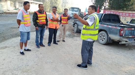 2018年8月 張宏(右一)在高青縣李中路高城段 為同事宣講注意事項(xiàng)