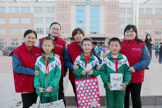 “付珍愛(ài)心媽媽團(tuán)隊(duì)”赴中新路小學(xué)開(kāi)展“圓夢(mèng)微心愿”活動(dòng)(左一付珍)