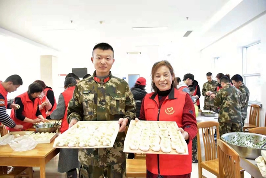 當(dāng)看到駐牟官兵、消防員大都是十八九歲處于青春期的孩子,離家遠(yuǎn)、訓(xùn)練苦,且平日因?yàn)橛?xùn)練時(shí)間緊,經(jīng)常吃不上一頓家人親手包的餃子,李紅就組織服務(wù)隊(duì)的姐妹們利用節(jié)假日時(shí)間到部隊(duì)為官兵們包餃子。
