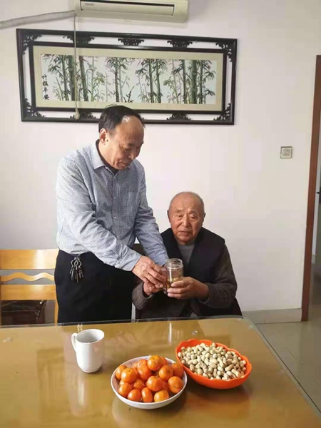 2017年10月,于水慶的母親不慎摔傷,右腿骨折,雖及時(shí)手術(shù)治療,由于年事已高(83歲),身體康復(fù)欠佳,自此生活不能自理,需要24小時(shí)照顧。這時(shí)于水慶兄妹四人齊心協(xié)力承擔(dān)起了照顧母親的重?fù)?dān),于水慶主動(dòng)承擔(dān)了更多的責(zé)任,將父母接到身邊照顧,精心伺候在母親病榻左右。從此,他和妻子承當(dāng)起了照顧三位老人的責(zé)任。